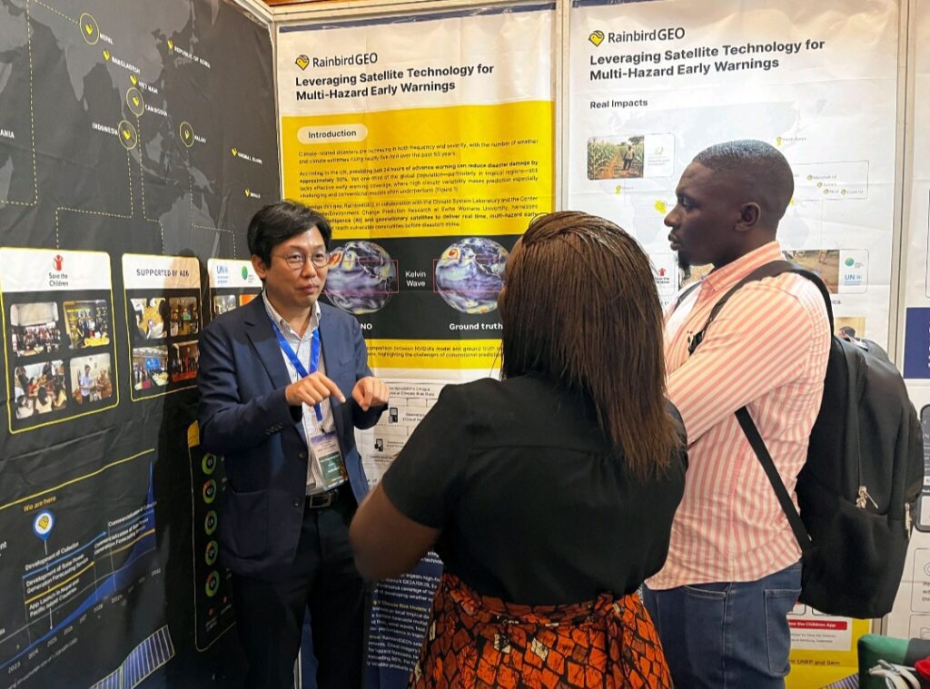 레인버드지오 최용상 대표는 심포지움 발표를 통해서 현재 한국기상위성을 이용해서 아시아 태평양 지역에서 진행되는 조기경보시스템 프로젝트를 소개했으며, 아프리카를 커버하는 유럽기상위성으로도 이러한 프로젝트가 가능하다는 것은 실증하였다.